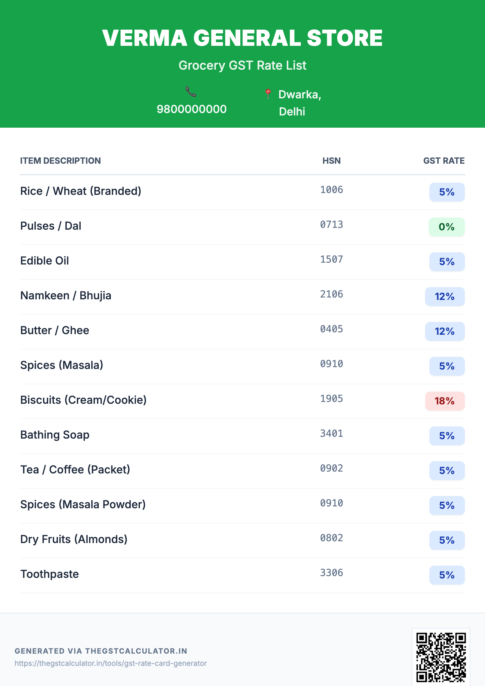 Tip: Save your GST rate card PDF/image and reprint it whenever GST rates change.